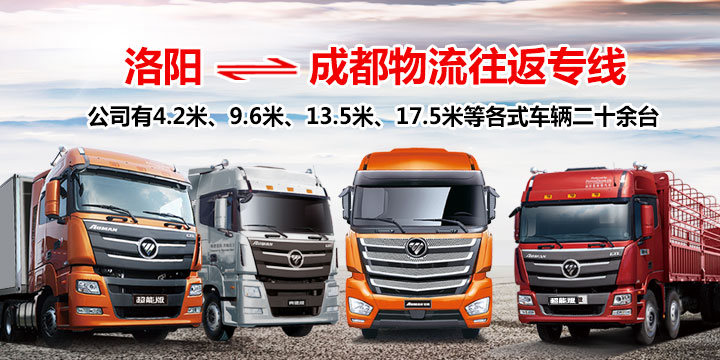 洛阳川蓉物流有限公司位于洛阳市310国道与王城大道交叉口金燕物流东区8-9#,主要承接:洛阳==成都往返货运业务,以及成都周边地区:德阳、绵阳、泸州、乐山、自贡、南充、宜宾、攀枝花等。我们有4.2米、9.6米、13.5米、17.5米等各式车辆二十余台!可办理整车零担、大件运输、设备运输等业务。